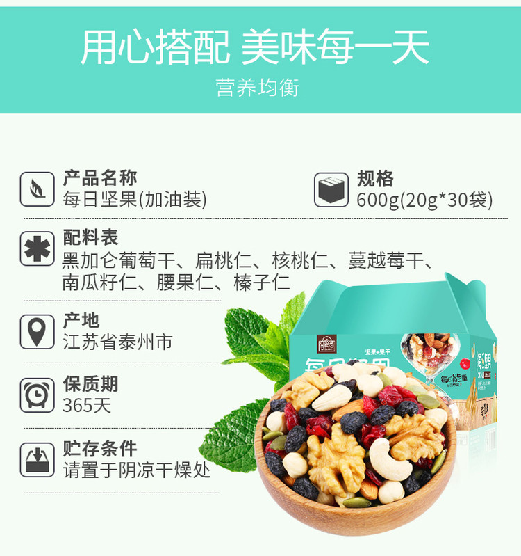 每日坚果礼盒600g混合坚果30包干果仁孕妇零食坚果大礼包
